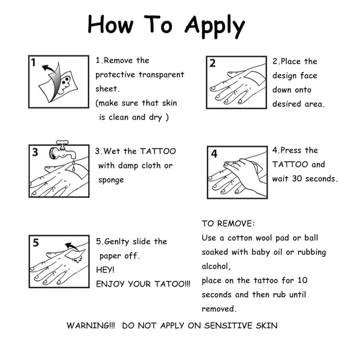 - â¤ď¸ăEasy to UseăThese dragon temporary tattoos are easy to use. Cut out the pattern and peel the protective film. Place the tattoo on skin. Wet the paper until it soaked with wet cloth. Pressure tattoo lightly and slowly on the paper for 10 seconds. Then remove the tattoo paper, and done.