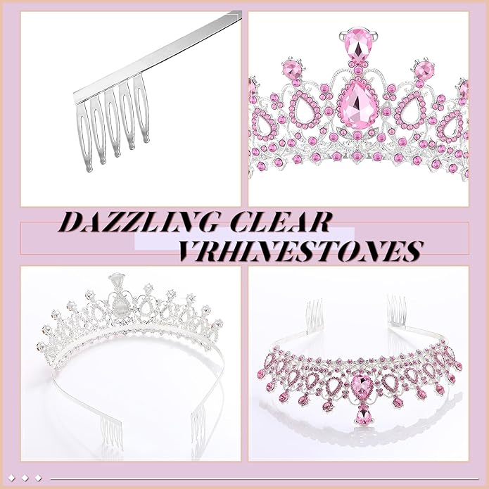 - Quality Material: this princess crown with comb is crafted using quality alloy and rhinestones; The brilliant shine and durability of the alloy, combined with the dazzling precision cut rhinestones, ensures that this tiara crown retains its shiny and elegance for a long time