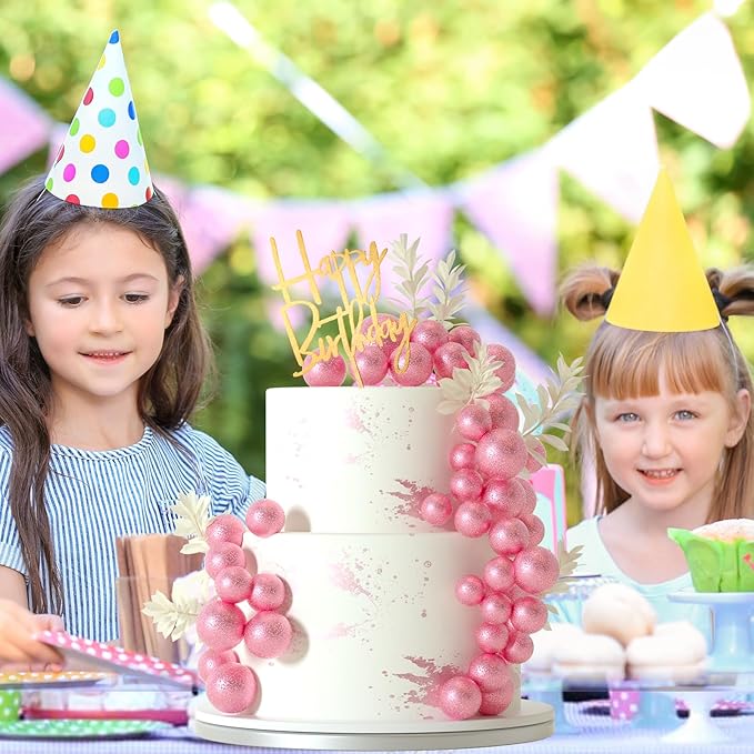 - Package included : 10pcs white grass cake toppers, 1pc happy birthday cake topper, 42pcs rose gold balls