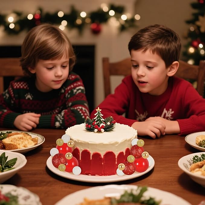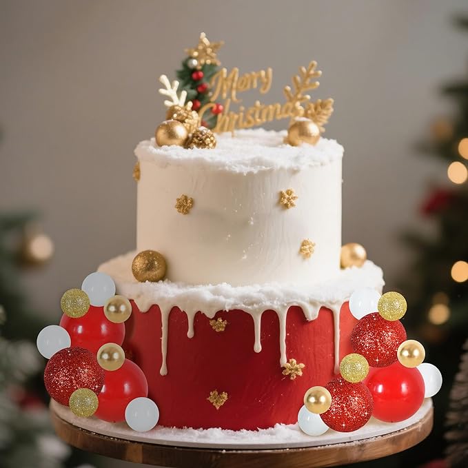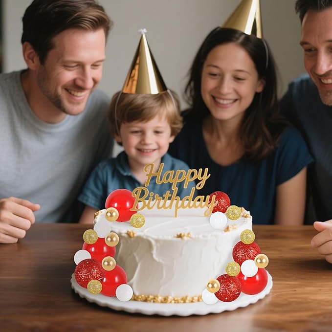 BEISHIDA 40 pcs Foam Ball Shaped Cake Toppers with Sticks Perfect for Birthday Party Baby Shower Christmas Party Decor Wedding Anniversary Chinese New Year(Red, Gold, White)