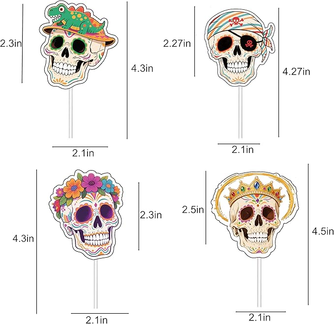 - Irresistibly Mexican Day of the Dead Designs: Delight your guests with charming cartoon skulls! Each topper boasts unique expressions,different outfits, instantly adding a playful and heartwarming vibe to any celebration.