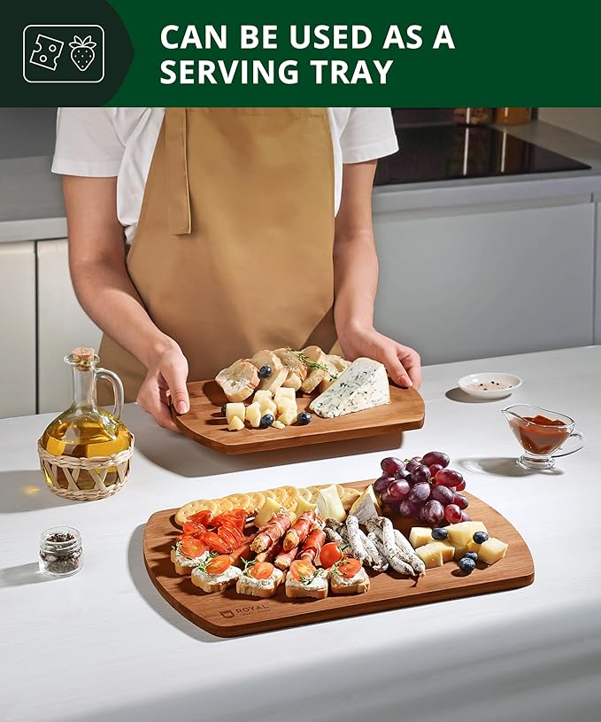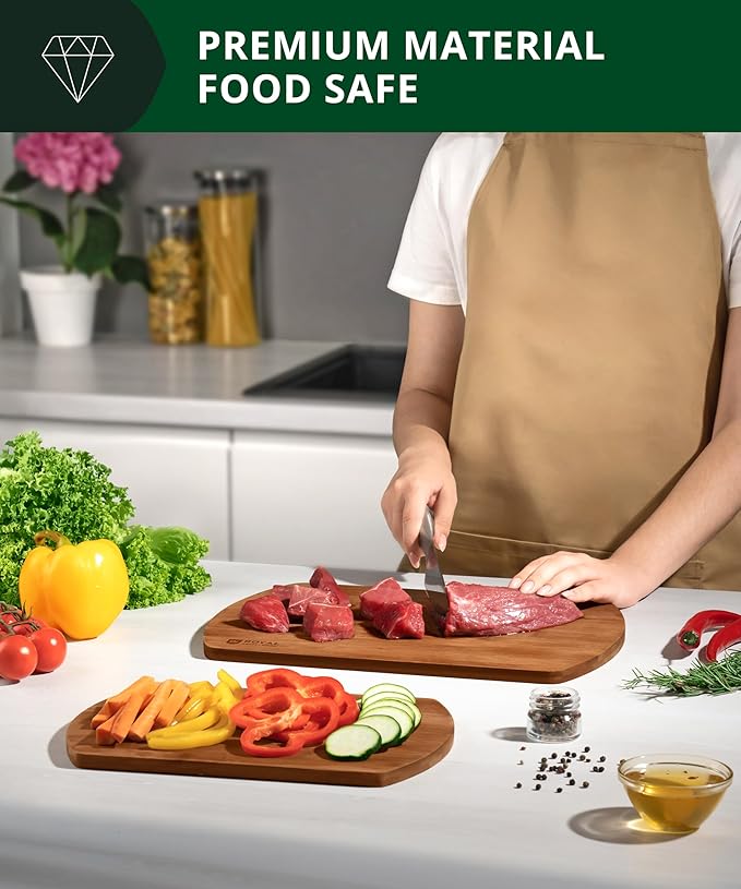 - FOOD-SAFE CRAFTSMANSHIP, BUILT TO LAST: Crafted from premium, food-safe bamboo, these boards are suitable for preparing or serving meat, vegetables, and snacks. Their durable surface resists wear, while the smooth finish keeps utensils and knives safe. Built for longevity — made to serve, share, and impress.