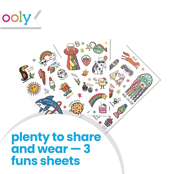 - [MANY USES]: OOLY tattoos are the perfect birthday party favors goodie bag stuffer, cut up the sheets and spread the fun. Sprinkle tattoos on your tables as birthday decorations, kids birthday party favor, for school parties, fun sleepover activity and more