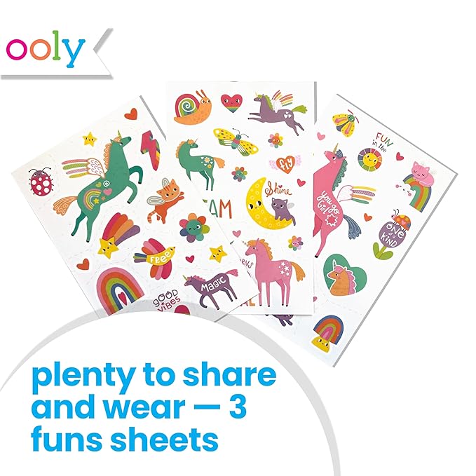 - [MANY USES]: OOLY tattoos are the perfect birthday party favors goodie bag stuffer, cut up the sheets and spread the fun. Sprinkle tattoos on your tables as birthday decorations, kids birthday party favor, for school parties, fun sleepover activity and more