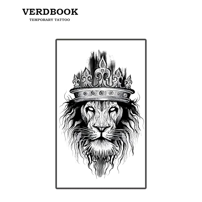 Waterproof Temporary Tattoos: 2-Sheet Tattoo Kit with Realistic Body Stickers, Semi-Permanent Tattoos for Adults Lasting 7-15 Days – Safe for Men & Women,Crown Lion