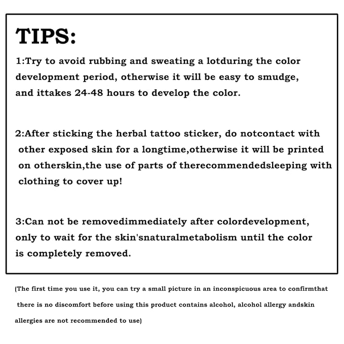 - 【30-Second Application & Gradual Vividity】How to apply: Clean skin, place design face-down, wet with the included sponge until saturated, press for 30 seconds, then peel off. Note: Starts faint but darkens over 24–48 hours, developing into a rich, realistic finish that rivals professional ink—effortless for stunning results!
