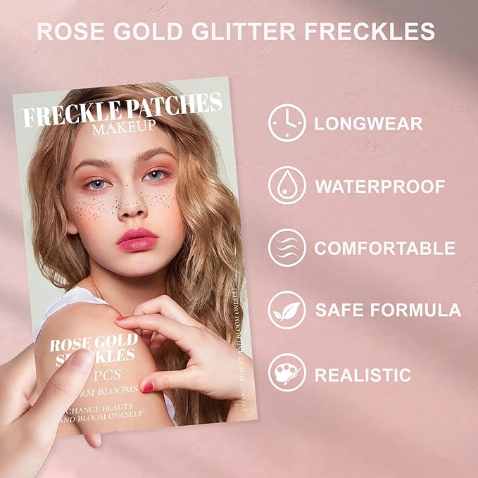 - This LEZERO glitter freckle patch set includes five color styles: gold, silver, rose gold, brown, and gold & silver. Both women and children can easily create a shimmer facial makeup without worrying about skin irritation or damage.