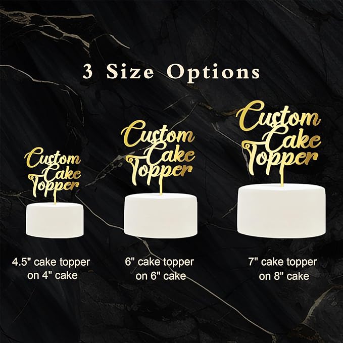 - The cake topper is available in 4.5, 6, and 7-inch widths. Please choose the size that best fits your cake.