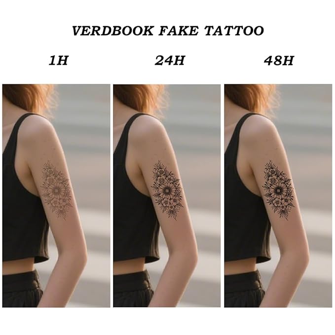 - 【Gardenia Extract & Safety Promise】Formulated with pure gardenia extract, VERDBOOK tattoos are 100% natural, chemical-free, and safety-tested. Eco-friendly and skin-gentle, they deliver bold color without irritation. Caution: Avoid face, sensitive areas, or damaged skin for optimal safety.