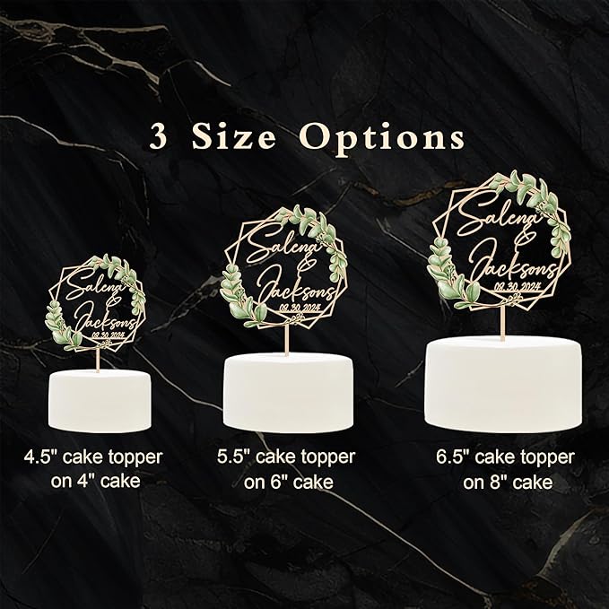 - The cake toppers are available in 4.5, 5.5, and 6.5-inch widths. Please choose the size that best fits your cake.