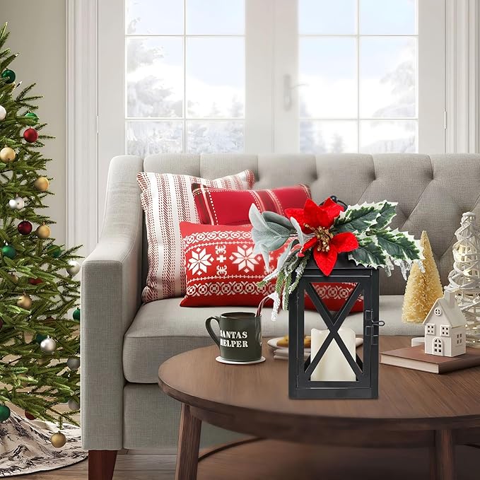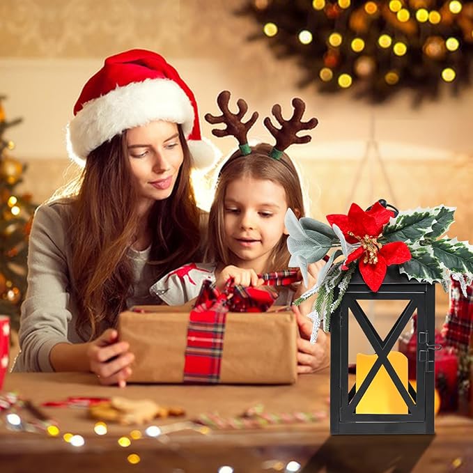 - {Decorative Hanging Lantern} Decorative lantern top with sturdy hanging loop for easy hanging, including red floral and greenery, combined with Christmas elements to ring a warm and atmosphere to your home or party. It can be used daily and at festivals