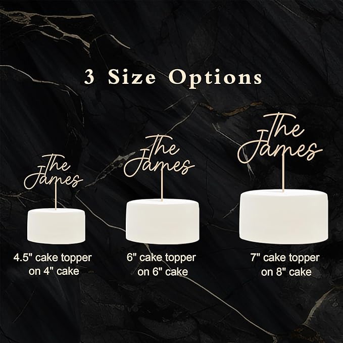 - The cake toppers are available in 4.5, 6, and 7-inch widths. Please choose the size that best fits your cake.