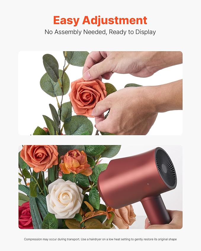 - Premium Realism: Our faux flowers feature high-density artificial blooms with full shapes, naturally vivid colors, rich layers, and exquisite detailing. Each flower is handcrafted and secured with hot-melt adhesive, ensuring fade-resistant color, petal retention, and a stable structure for reliable quality