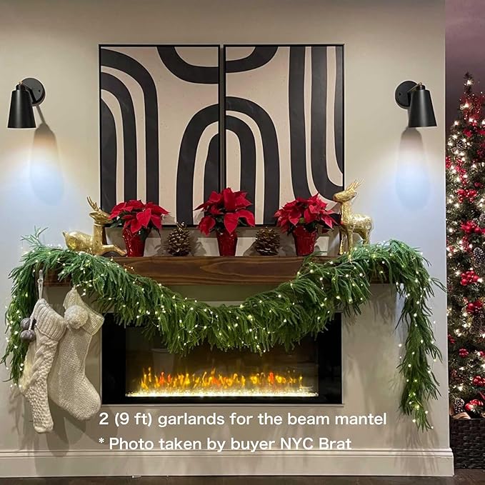 - REALISTIC PINE GARLAND: Made of high-quality PE Leaves, real touch feeling and flexible;wrap with brown color texture,Durable and looks more realistic ; Ideal for indoor and outdoor Christmas themed decorations.