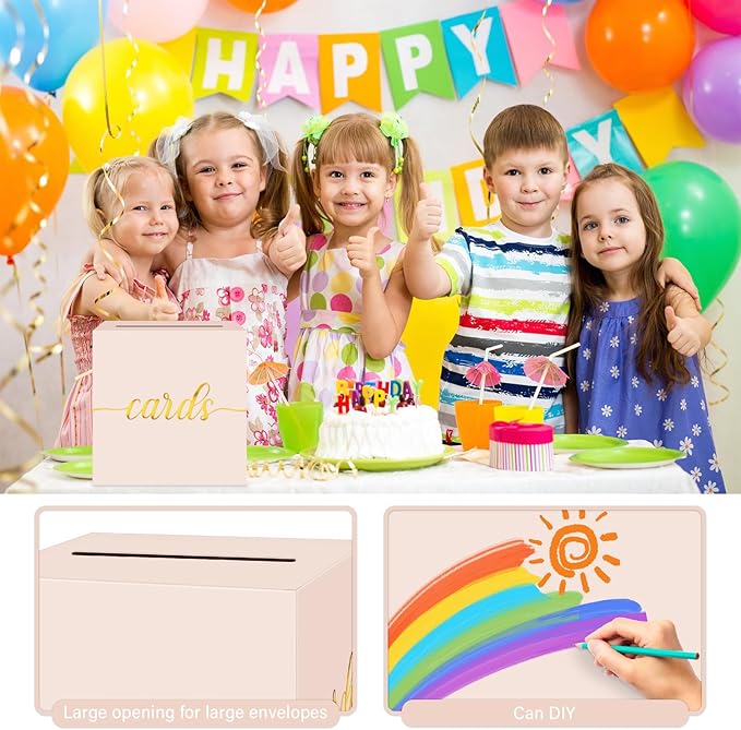 - 【Exquisite Design】The blush pink card box is printed with elegant gold "card" characters, so that your friends can see its function at a glance. The party card box is suitable for any scenario. The exquisite design can also be the icing on the cake for your party. Let the blush pink box add more splendor to your graduation or birthday party and more!