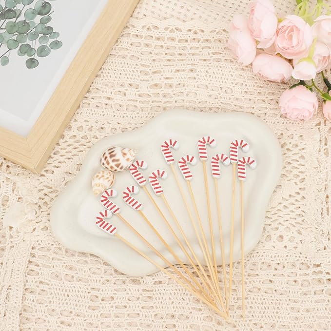 - QUANTITY AND STYLE: You will receive 100 candy cane cocktail sticks. Can used as charcuterie board accessory items, skewer sticks, cocktail garnish, cocktail accessories. Appetizer toothpicks for food will add an air of sophistication to your table. So our decorative toothpicks perfect for your entertaining and party supplies needs!