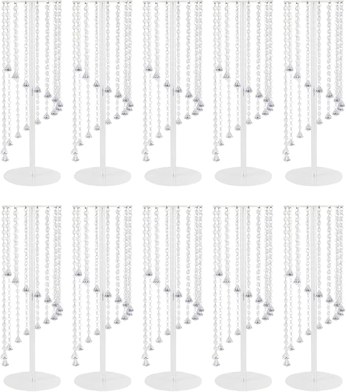 - Package Include:10 pcs crystal centerpieces flower stand for wedding and events. Height is 55.6cm/21.9inch (Each). The top round plate diameter is 20cm/7.9inch,14.2cm/5.6inch. Artificial flowers are not included. Perfect for a housewarming or wedding present.