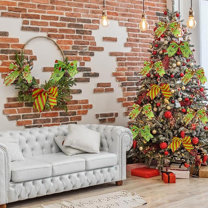 - Capture the Magic of the Season - Try to use our bows for Christmas tree bring the enchanting spirit of the holidays into your home! Crafted from high-quality polyester ribbons that don't tear, crinkle, fade or unravel. The flexible nature of the material allows the bows to maintain their full, fluffed shape season after season. To create a captivating visual story with our meticulously designed Christmas ribbon.