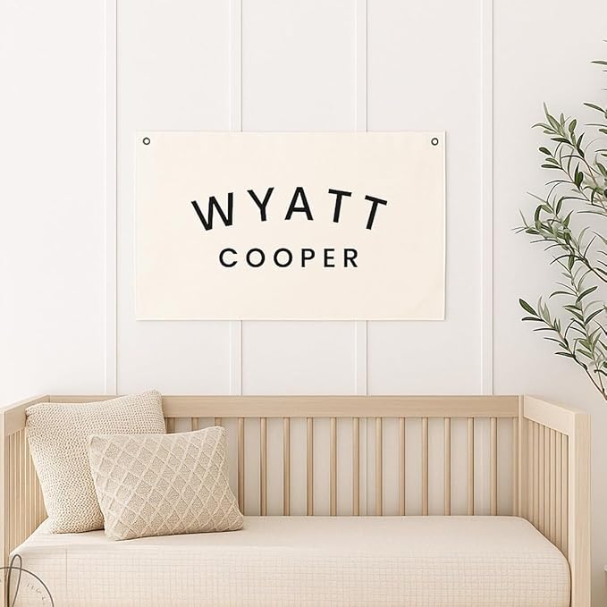 Custom Baby Name Cavas for Nursery, Personalized Name Banner for Bedroom, DIY Boho Canvas Flag Name Sign Customizable for Playroom Baby Shower Birthday Party Themed Gift