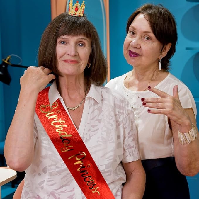 Birthday Princess Sash for Women Tiara & Crowns Headbands for Girls Happy Birthday Party Accessories Favor Supllies Leona Gold Red Pink, 2 Pack