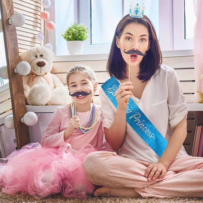 Birthday Princess Sash for Women Tiara & Crowns Headbands for Girls Happy Birthday Party Accessories Favor Supllies Leona Blue Silver Pink, 2 Pack