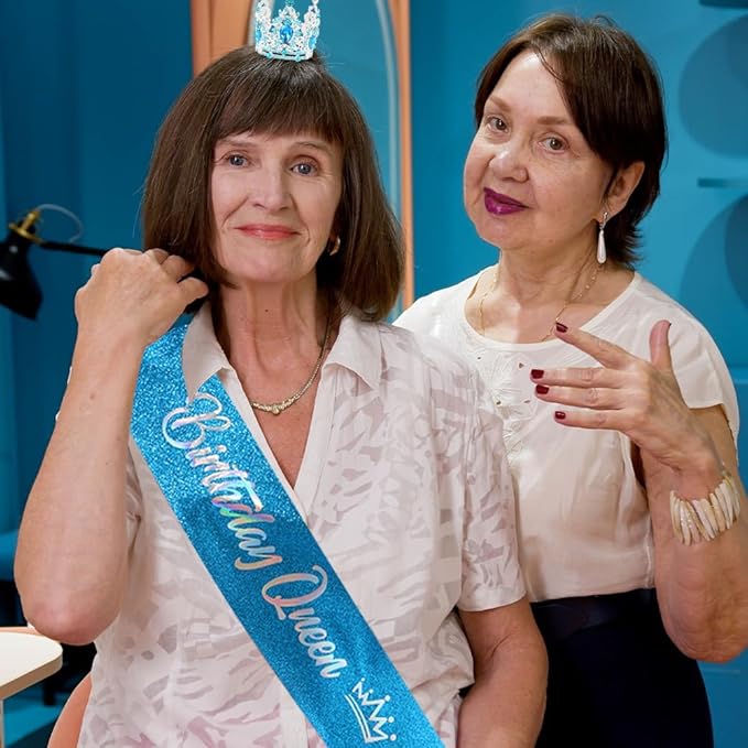 Birthday Queen Sash for Women Tiara & Crowns Headbands for Girls Happy Birthday Party Accessories Favor Supllies Leona Blue Silver Pink, 2 Pack
