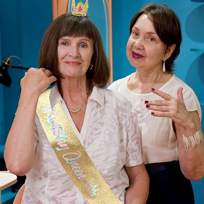 Birthday Queen Sash for Women Tiara & Crowns Headbands for Girls Happy Birthday Party Accessories Favor Supllies Leona Gold Pink, 2 Pack