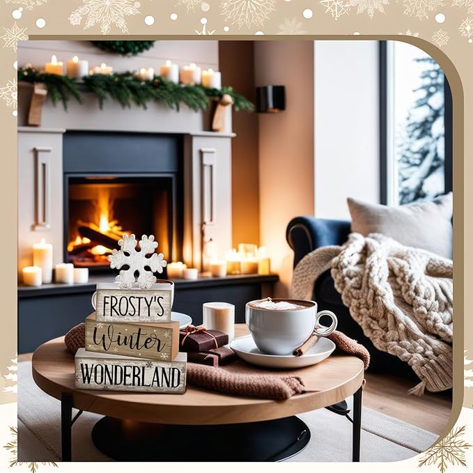 - Delightful winter Elements: featuring cute winter elements, our aesthetic christmas decoration offers more than just blocks; It's a celebration of winter; Use these versatile pieces to decorate your bookshelves, mantelpieces, coffee tables, tiered tray, or create a mini winter corner in your favorite space