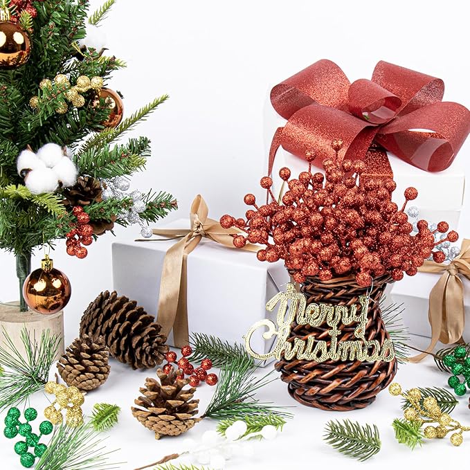 - 【Versatile Decor】:The 32-piece shimmering Christmas berry stems set meets all your holiday decorating needs. Use them to adorn Christmas trees, wreaths, mantelpieces, or gift boxes—each decoration gets an elevated, unique look that stands out.