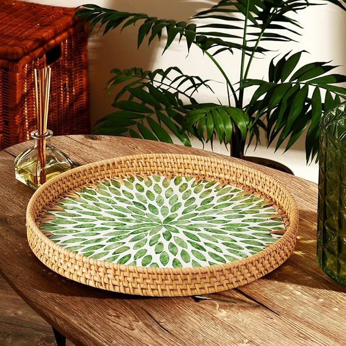 - HANDMADE WOVEN CRAFT DESIGN:This handmade woven tray is the result of the artisan's ingenuity. Each rattan strip has been carefully woven to create a natural and dynamic texture. Unlike mass-produced items, it has the warmth of handcrafted items. Whether it is Bohemian or rustic, the decorative tray can easily blend into any home decor style and enhance the style of your home