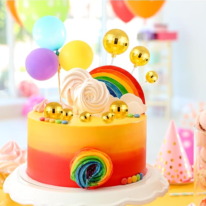 - Package includes: 20 pcs gold disco balls for cake decorations. there are 8 balls with a diameter of 1.18 inches/ 3 cm, 6 balls with a diameter of 1.57 inches/ 4 cm,6 balls with a diameter of 1.96 inches/ 5 cm.