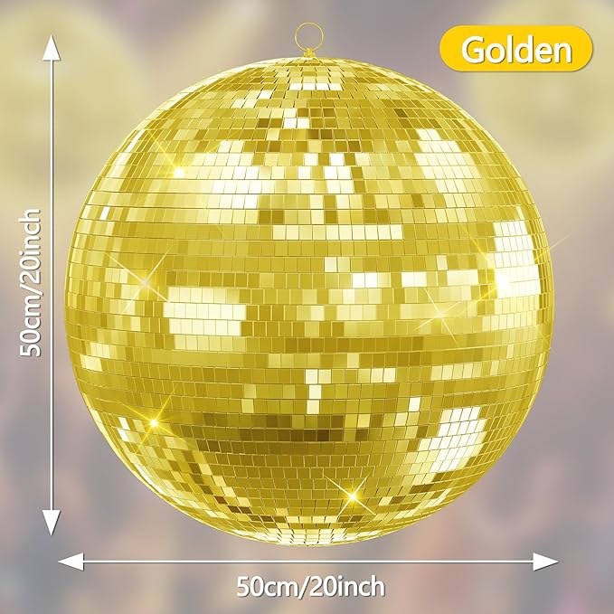 - 【Widely used scenes, multi-functional decoration】from home decoration to stage lighting effects, mirror disco ball is widely used. The 20 inch gold disco ball can be used for wedding background, window display, Christmas decoration, ballroom lighting, etc., adding atmosphere to various occasions.