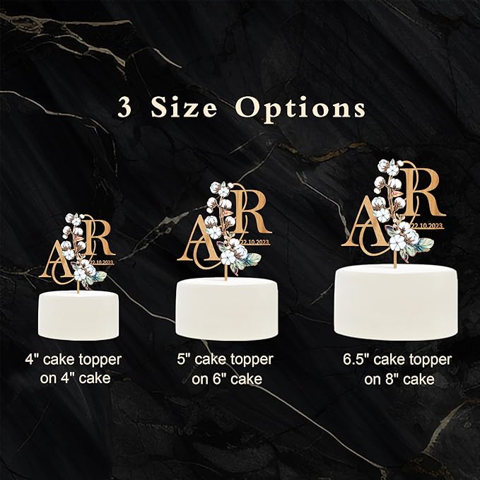 Personalized Autumn Wedding Cake Topper in Wood Custom Bride and Groom Initial Cake Topper Wedding Date Cake Decoration (Cotton)