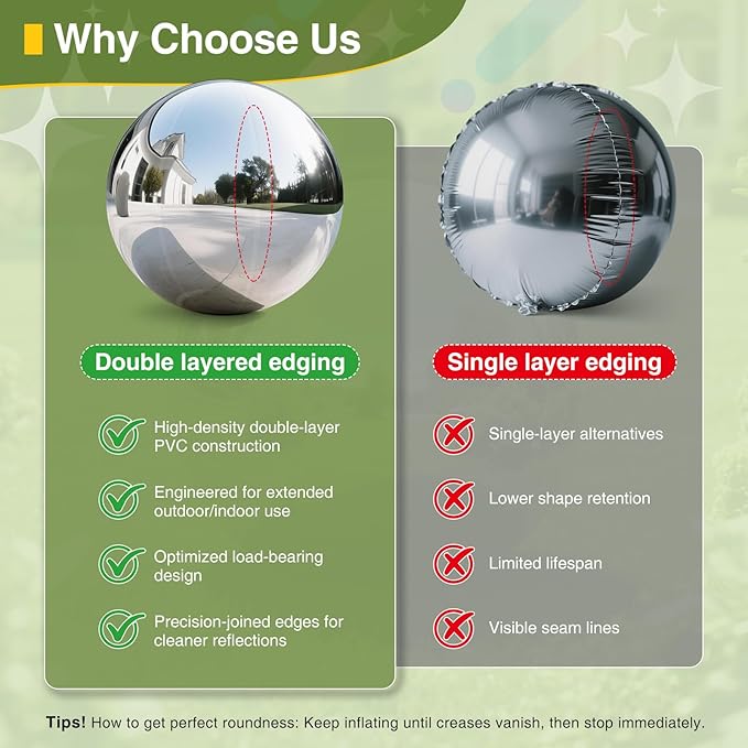 - Double-Layer Design:VVELIKE inflatable mirror ball features a double-layer design. The outer layer consists of a 0.35mm-thick specially mirror material, while the inner layer comprises a 0.4mm-thick PVC material.,creating dazzling 360° reflections. These mirror balls are perfect for disco party decorations and wedding decorations.