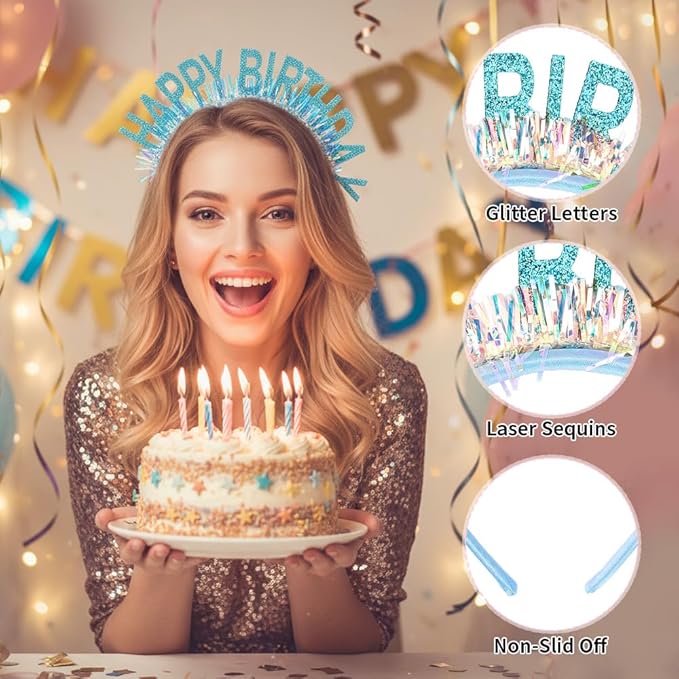 - Materials: Premium plastic, glitter sequins, glitter letters. Sparkling and vibrant, durable and fade-resistant. Wear this dazzling headband to receive more compliments and blessings on your special day! birthday headband for women, birthday tiara for girls, birthday decorations, happy birthday decorations, 50th birthday decorations, 21st birthday decorations, 40th birthday decorations, birthday decorations for women, 30th birthday decorations for her, 60th birthday decorations