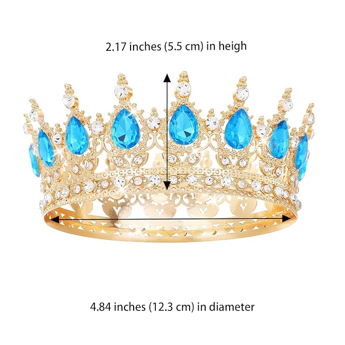 Blue Crown for Women Crystal Tiara and Queen Crown for Girl Wedding Headband for Bride Hair Accessories for Costume Birthday Party Cake Decoration Prom