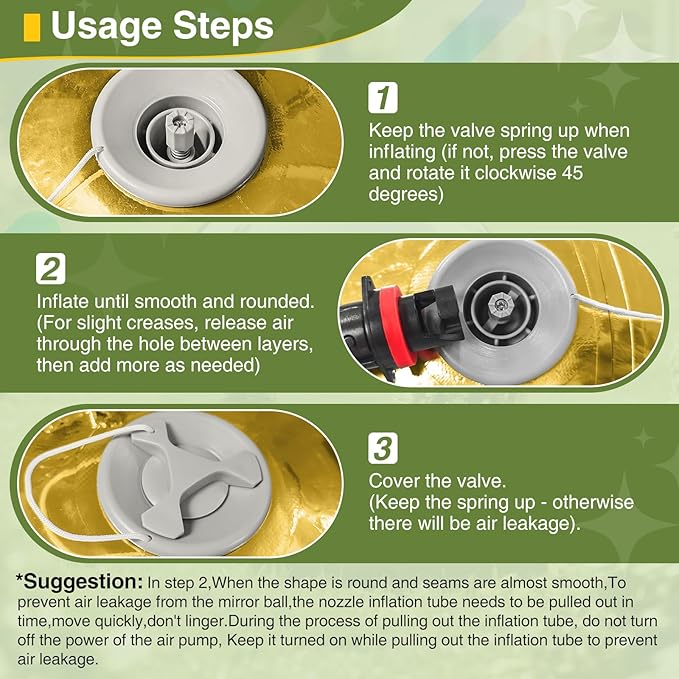 - Quick Inflation &Deflation:This giant inflatable balls can be easily inflated and deflated via a unique inflation valve;, you can fold the inflatable mirror ball for easy storage,You can easily reuse it for the next event,making it ideal for reusable party decorations.