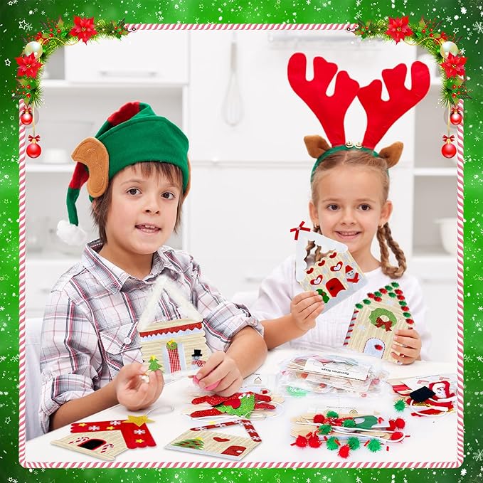 - 【Adorable Christmas House Designs】These craft kits feature cute holiday house shapes with colorful accessories such as stars, snowflakes, wreaths, and festive accents. Once completed, they can be used as unique Christmas tree ornaments or holiday home decorations