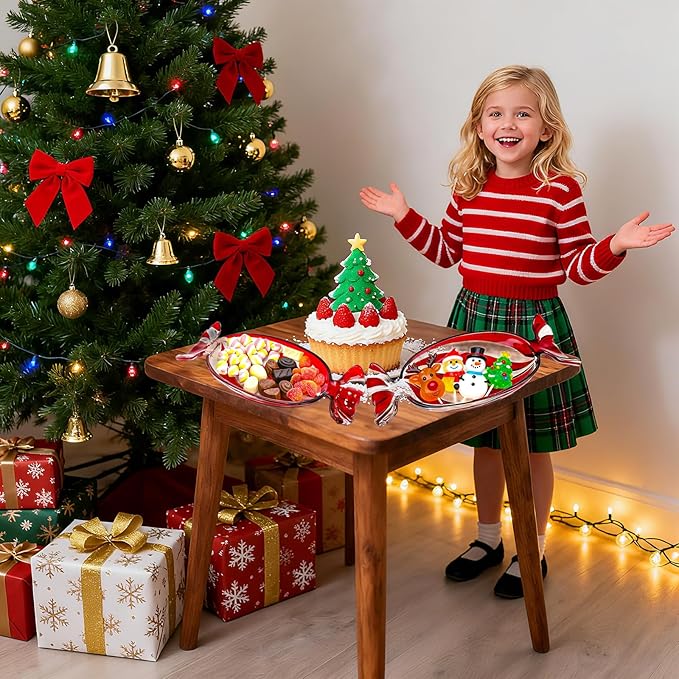 - Durability & Safety: The holiday serving tray is made of high quality glass with thick walls—sturdy and not easy to damage, ensuring long-lasting use for years of Christmas seasons. The crystal-clear surface showcases your candies, fruit, or desserts beautifully, while the food-safe, non-toxic material gives you peace of mind when serving family and friends. The Christmas candy shaped glass platter is a reliable Christmas dish that stands up to frequent holiday use