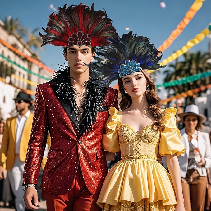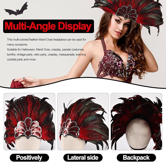 - Multiple Occasions:These sequin feather headdress can be paired with any style of clothing, perfect for Carnivals,Caribbean Parade,Halloween,Weddings,birthdays, parties,dances and any other retro style occasion. Add elegance and charm to your look
