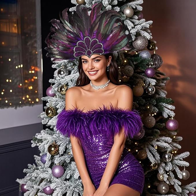 - Multiple Occasions:These sequin feather headdress can be paired with any style of clothing, perfect for Carnivals,Caribbean Parade,Halloween,Weddings,birthdays, parties,dances and any other retro style occasion. Add elegance and charm to your look
