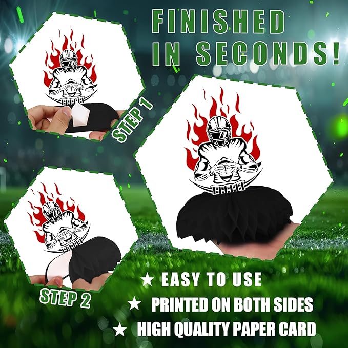 Football Birthday Party Decorations – 12 PCS Honeycomb Centerpieces, Touchdown Table Decorations for Super Bowl Party Supplies
