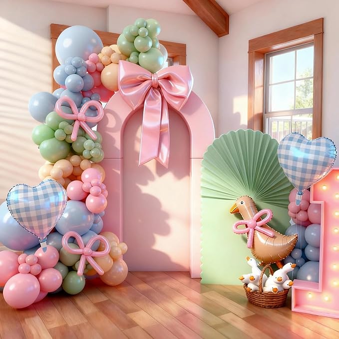 - Premium Quality: Our pink blue green party balloons arch kit is crafted from thick, elastic latex for durability and vibrant display. With long-lasting inflation, non-toxic materials, these helium balloons ensure your decor stays elegant from start to finish. Create a 'one silly goose' party decoration for your little one