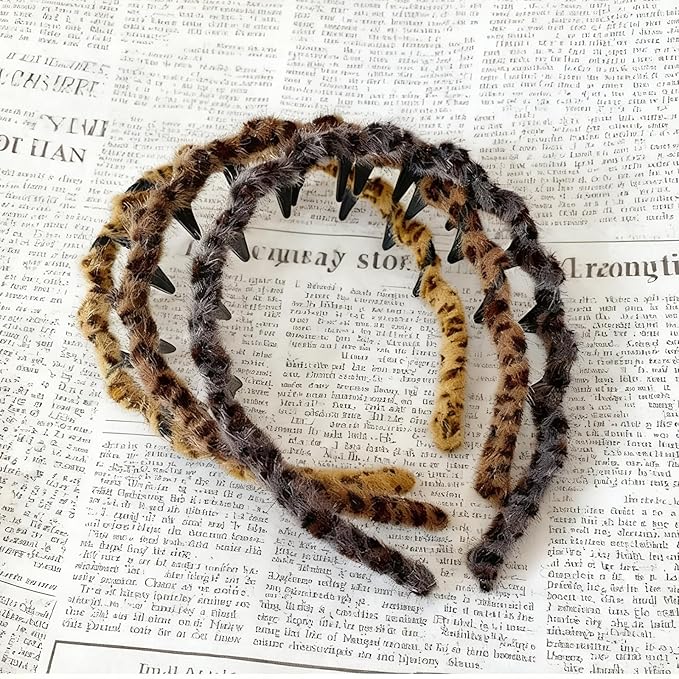 3PCS Retro High Skull Headband Wedding Party Elegant Reversible Headband with Teeth High Cranium Headbands for Women (Leopard)